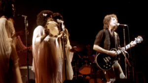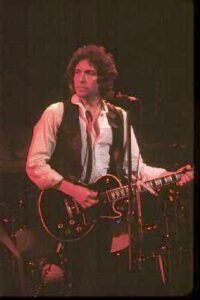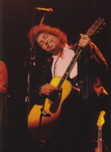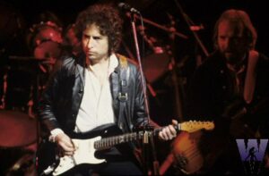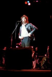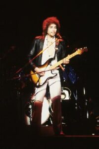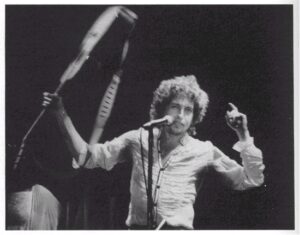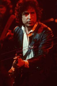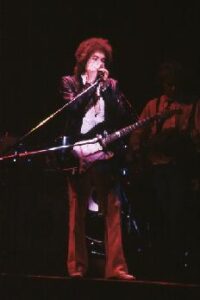 From his early twenties Dylan had had to cope with many of the difficult and restricting aspects of stardom. With his distinctive profile, he had become one of the most recognisable entertainers in the world and was constantly hounded by fans and the media; his opinions sought on every political and moral issue. He reacted against all this attention in a number of ways, avoiding most ‘showbiz’ events; never appearing on chat shows and restricting interviews. He tried to guard the details of his private life as much as possible; marrying in secret and, after the controversies of his ‘going electric’ period, withdrawing from regular touring and trying to live a relatively normal life in his countryside retreat in Woodstock. But such efforts only added to his mystique. Since he first became a public figure he had been held up as an ‘oracle’ whose every pronouncement and lyrical twist was analysed in depth (and often wildly misinterpreted). Eventually his rural ‘hideout’ became so well known that he had to retreat into the comparative anonymity of city life. When he finally reemerged onto the public stage his high profile tours of the 1970s made him a massive headlining act, capable of attracting huge crowds, such as the 200,000 who saw him at the Blackbushe concert in Surrey in 1978.