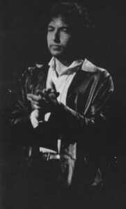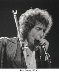 When Dylan finally takes the stage, he leads a crack band of session musicians, including Spooner Oldham on keyboards and Jim Keltner on drums, into the insistent chugging rhythm of Gotta Serve Somebody. The seventeen song set is drawn entirely from the recent album, along with nine new unrecorded religious songs. The three black women singers now play a key role, supplying gospel-style call and response vocals. Although Dylan is – not surprisingly on this first gig of the tour – slightly tentative at times, it is already possible to discern a new passion and ferocity in his performances, whether playing the angry prophet of Slow Train, the humble believer in I Believe in You or the ‘sacred lover’ of Precious Angel. The show ends with him interchanging vocals with the singers in the ‘gospel sing-a-longs’ Blessed is the Name and Pressin’ On. The audience joins in enthusiastically with the church-style handclaps.