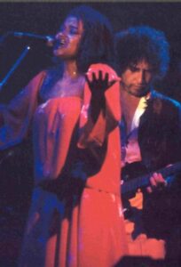 The three backing singers Regina Havis, Mona Lisa Young and Helena Springs take the stage. Regina Havis begins a monologue about a penniless old woman who is thrown off a train for having no money to pay the fare but who then, with Jesus’ help, miraculously causes the train to stop. The conductor, acknowledging her holiness, then allows her to board the train again. This morphs into I’ve Got My Ticket, Lord, a gospel standard from the 1940s, as the three singers demonstrate their considerable vocal range and power. The audience are deathly quiet at first. But then the singers perform another gospel song, then another. Then another… The audience are clearly getting a little twitchy now. To some extent they have been prepared for this, having heard about Bob’s conversion. Many of them have digested the songs on the Slow Train Coming album, which has been out for a couple of months. But perhaps they are now wondering whether Bob will appear at all…