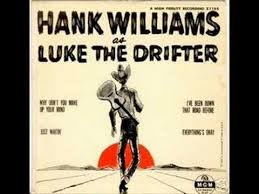 The ‘hobo’s down fall is described in semi-Puritanical language …But I did not trust my brother, I carried him to blame/ Which led me to my fatal doom, to wonder off in shame… as if he is a modern version of a Biblical figure like Cain or Jacob, or even Judas. Then he leaves us with a pointedly moralistic message, addressing the listeners with studied politeness as : …Kind ladies and kind gentlemen… declaring that he will soon ‘be gone’ but warning us that we should …Stay free from petty jealousies, live by no man’s code/ And hold your judgement for yourself, lest you wind up on this road… This is the kind of tone that Luke the Drifter frequently adopts.