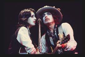 Baez’s song Diamonds and Rust (released in 1976 but performed regularly on the first Rolling Thunder Tour in late 1975) is generally acclaimed as her most accomplished composition. She has played it at virtually every concert since, usually with some words of explanation. Although Dylan is never mentioned by name, there is no doubt that the song is an account of her thoughts about her reconnection with Dylan in the mid ‘70s. Baez later played a key role in the Rolling Thunder tour. As well as performing her own material, she engaged in duets with Dylan on a nightly basis which were far more musically successful that when they sang together in 1963-64. In those earlier days Baez’s high contralto often clashed awkwardly with Dylan’s ‘voice of sand and glue’. But by 1975 Baez’s vocals had hardened somewhat and Dylan – following his ‘country’ period – now sang in a decidedly softer tone. Their harmonies on Dylan songs like I Dreamed I Saw St. Augustine and I Shall Be Released and on covers like The Water is Wide and Never Let Me Go were exquisite. Baez even played a prominent role in Dylan’s film of the tour Renaldo and Clara. But the Rolling Thunder tour was a specific project in which Dylan involved many of his old compatriots from the ‘60s. After it was over, they rarely sang together again.