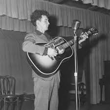 It is perhaps surprising that no Woody Guthrie covers appear on the album. But Dylan’s own Talkin’ New York uses the ‘talking’ blues’ format that Woody popularised to give a jaunty account of his own arrival in New York City in the icy cold winter of the previous year. …I froze right to the bone… he tell us. Then, borrowing a little from Chuck Berry, after a …rockin’ , rollin’ reelin’ ride… he lands in the place that he deliberately mispronounces as …Green-wich village… Already he sounds quite cynical about attitudes to ‘folk music’ in the coffee houses as he gets turned down by one proprietor: …You sound like a hillbilly. We want folk singers here… implying that he is expected to play the then-popular commercial and often bowdlerised form of the music which had brought some success to groups like The Kingston Trio. ‘Hillbilly’ music was a popular name for country and western, which the proprietor appears to be implying, is not ‘real’ folk music.